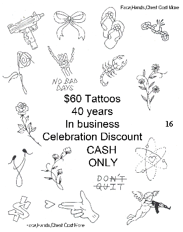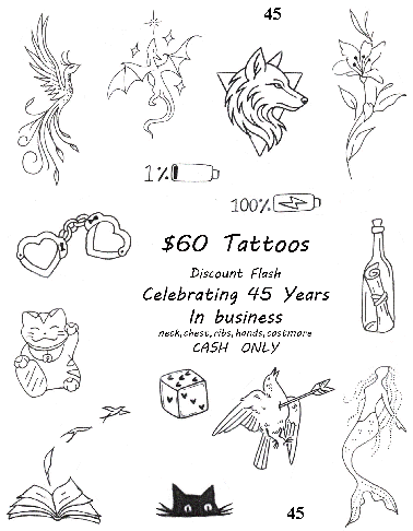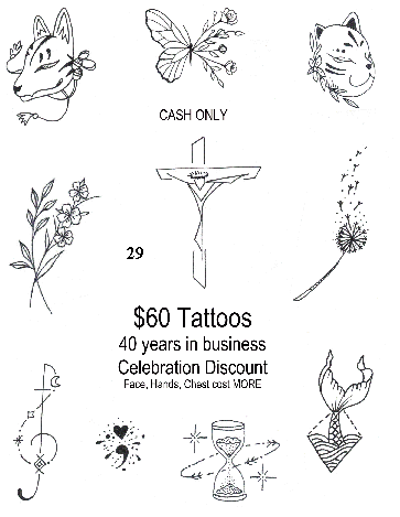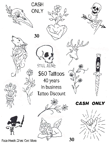 $60 Dollar Discount Tattoo Designs Page